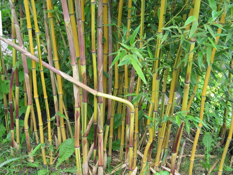 maximale Halmdicke: 3-4 cm Winterhärte: sehr gut (-25) Eigene Erfahrungen: ...einer meiner Lieblingsbambusse! Wie die Stammform Ph. aureosulcata, ist auch "spectabilis" ein robuster und sehr gut winterharter Bambus. Darüber hinaus ist er einfach auch wunderschön anzusehen - vor allem im Frühjahr, wenn sich die neu austreibenden Halme bei den ersten Sonnenstrahlen rötlich zu färben beginnen. Was die Halmdicke betrifft, so kann er zwar nicht mit einem Ph. vivax ´aureocaulis´ konkurrieren, aber die 3-4 cm dicken und fast sieben Meter hohen Halme, die ich bei einem Bekannten in der Pfalz gesehen habe, bieten einen fast ebenbürtigen Anblick - und das bei einer deutlich besseren Winterhärte. Charakteristisch für diese Form sind die sich rauh anfühlenden Halme und die Neigung zu Zickzackwuchs (siehe Ph. aureosulcata).