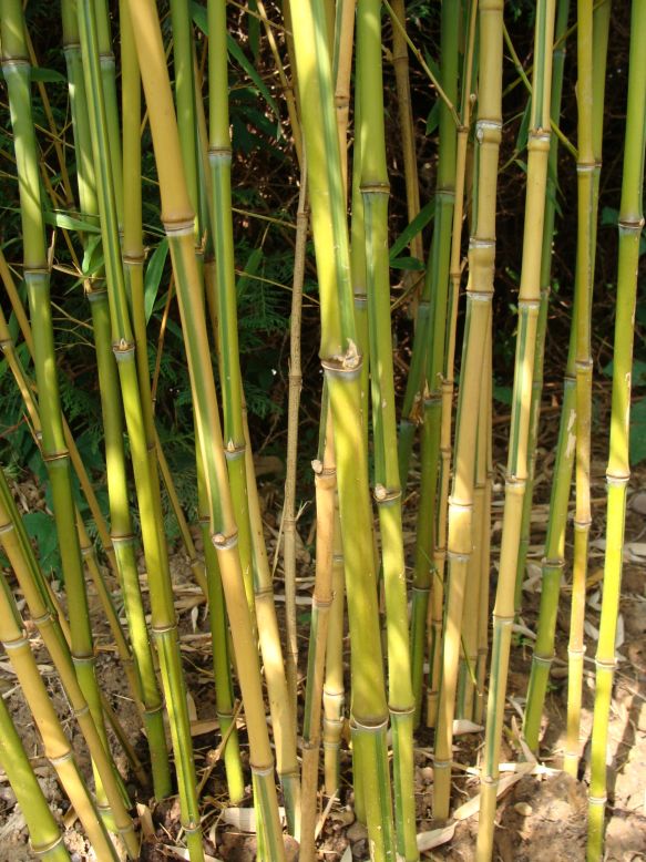 maximale Halmdicke: 3 cm Winterhärte: ausreichend (-16) Eigene Erfahrungen: Im Gegensatz zum weit verbreiteten Ph. aurea sind die Halme von aurea koi gelb statt grün gefärbt. Lediglich der Sulcus behält die dunkelgrüne Färbung, was in Kombination mit den asymmetrischen Stauchungen im unteren Bereich zu einem sehr schönen, ornamentalen Gesamtbild führt. Leider ist dieser Bambus nur für die wintermildesten Regionen Deutschlands zu empfehlen, da bereits bei Temperaturen um -10 Grad Winterschäden auftreten können. Nach meinen bisherigen Erfahrungen scheint die Winterhärte von aurea koi somit auch noch etwas geringer zu sein, als die der grünen Stammform. Meine eigene Pflanzen hatte im Winter 2004/2005 jedenfalls unter allen ausgepflanzten Phyllostachysarten die stärksten Blattschäden zu verzeichnen, wobei sich insbesondere die Kombination von Bodenfrost und intensiver Frühjahrssonne (Ende Februar / Anfang März) zu verheerenden Blattschäden von 80-90% führte. Vermutlich wäre es daher ratsam, diesen empfindlichen Bambus an einer geschützten Stelle mit möglichst wenig Wintersonne zu pflanzen. |