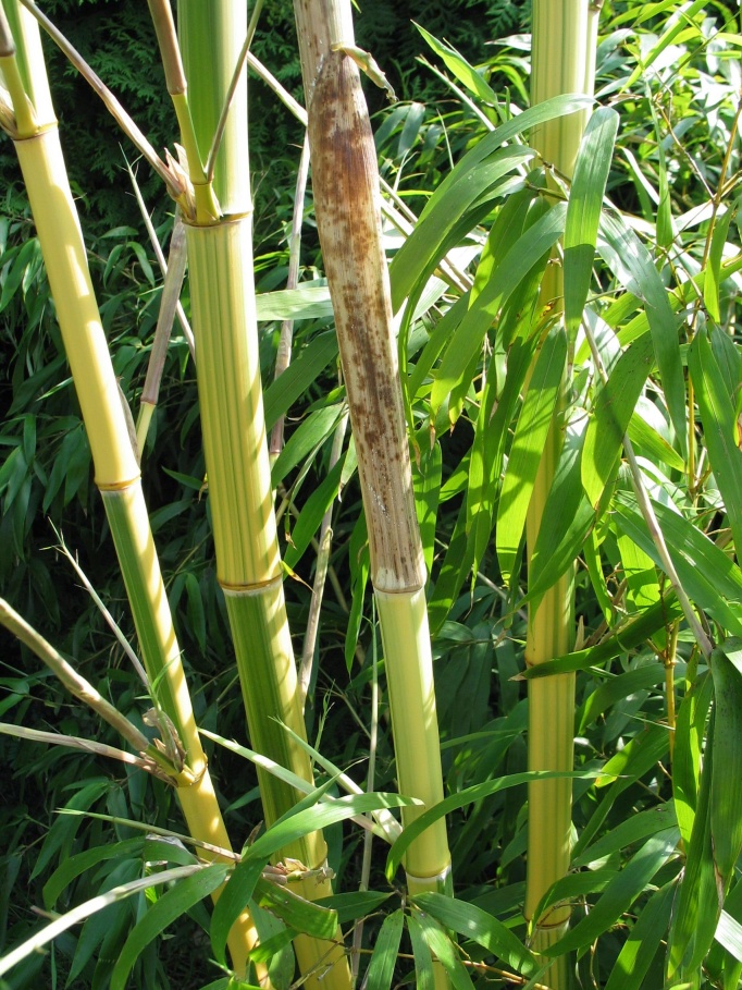 maximale Halmdicke: 7 cm Winterhärte: gut (-20) Eigene Erfahrungen: Wie der Name bereits andeutet, stellt dieser bisher wenig verbreitete Bambus ein optisches Gegenstück zu Ph. vivax huangwenzhu dar (gelbe Halme mit grünem Sulcus bei vivax huangwenzhu inversa, grüne Halme mit gelbem Sulcus bei vivax huangwenzhu). Entlang der Halme treten darüber hinaus aber auch noch zahlreiche feine Streifen in unterschiedlichen Grüntönen in Erscheinung, die die Attraktivität der Pflanze zusätzlich steigern. Aus meiner persönlichen Sicht ist vivax huangwenzhu inversa der derzeit schönste vivax-Kultivar und es bleibt abzuwarten, ob es in Zukunft noch weitere Mutationen des "Zauberbambusses" geben wird, wie beispielsweise einen "vivax aureocaulis inversa" mit grünen Halmen und unregelmässigen gelben Streifen... Nach meinen bisherigen Erfahrungen ist der mir vorliegende Klon (Herkunft des Klons: J. Schmitz, aureocaulis-Mutterpflanze von Jos van der Palen) äußerst wüchsig. Ausgehend von einer winzigen Pflanze bildete er nach nur 4 Jahren bereits 5-6 Meter hohe Halme.