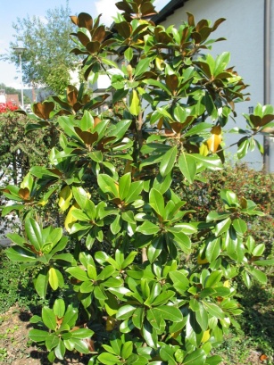 Magnolia grandiflora ´gallisoniere´Zu den wohl schönsten Gehölzen, die im Mittelmeerraum häufiger anzutreffen sind, zählt die bis zu 20 m hohe, immergrüne Magnolie. Die reinweißen und angenehm duftenden Blüten gehören zu den größten Baumblüten überhaupt. Die immergrüne Magnolie ist ein wertvolles Gehölz, das auch unter optimalen Bedingungen nur langsam wächst und ursprünglichen aus dem südöstlichen Nordamerika stammt. Winterhärte: ca. -18 Grad.